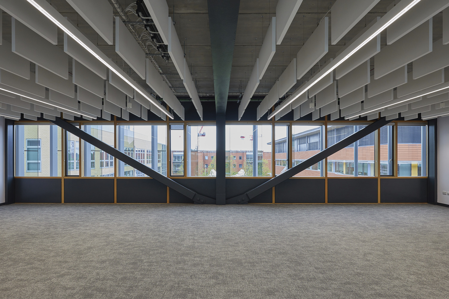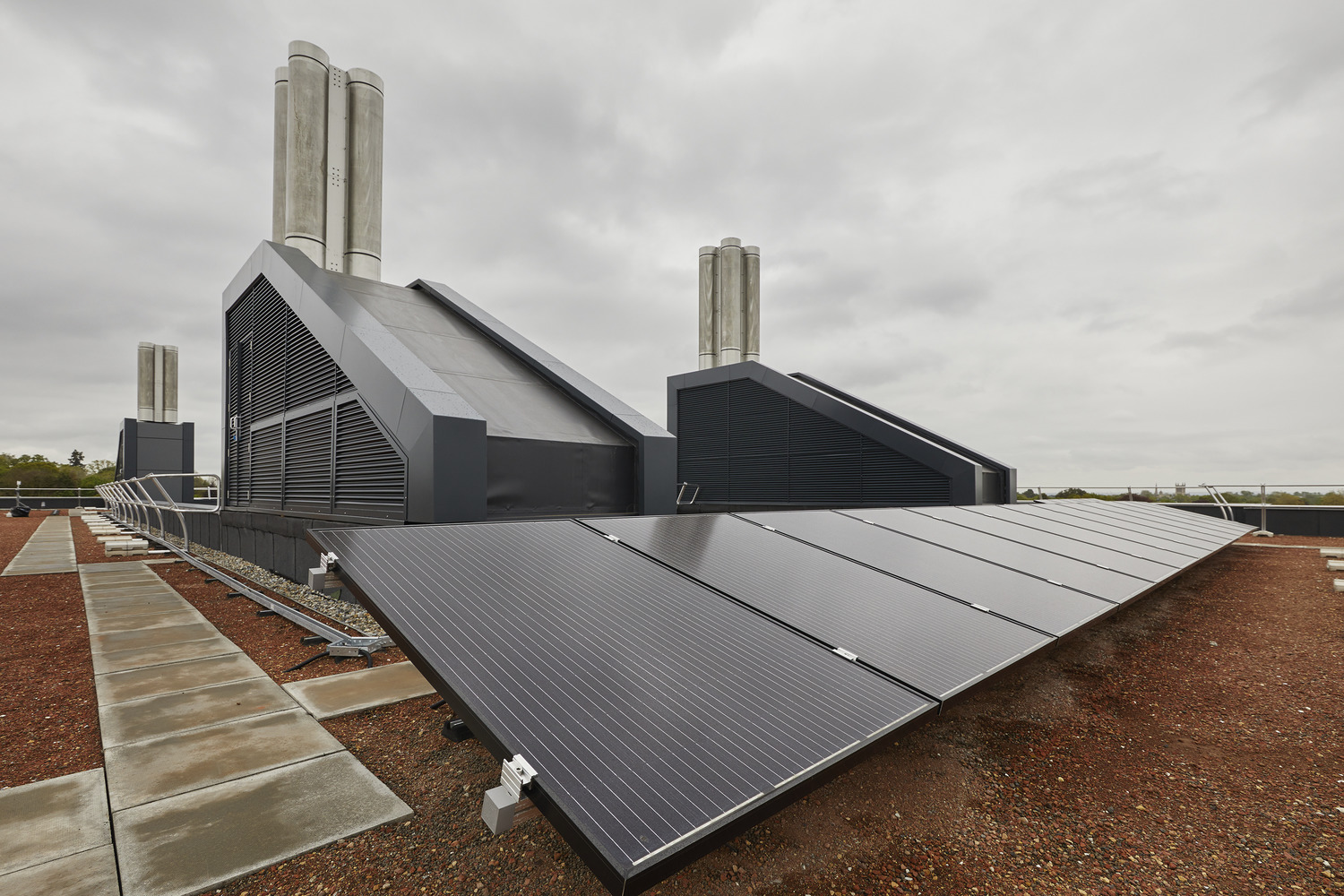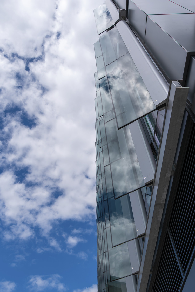 Developed with deconstruction in mind, the building comprises a basement, steel frame with precast concrete hollow-core flooring, a façade of rainscreen cladding and curtain walling with integrated external fins and a ‘blue/green roof’ with solar panels.