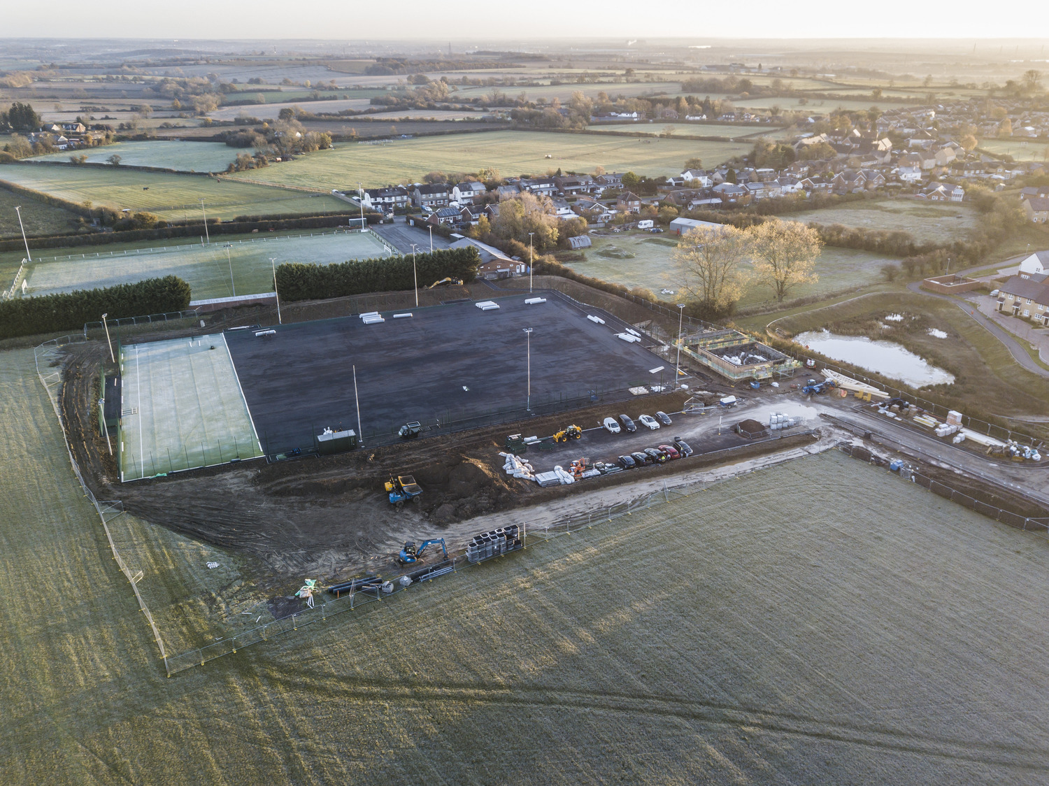 The external works include creating new access routes and parking for Cranfield United Football Club, and associated soft and hard landscaping. The construction works also included the installation of a culvert to drain the site and over spill for a nearby balancing pond.