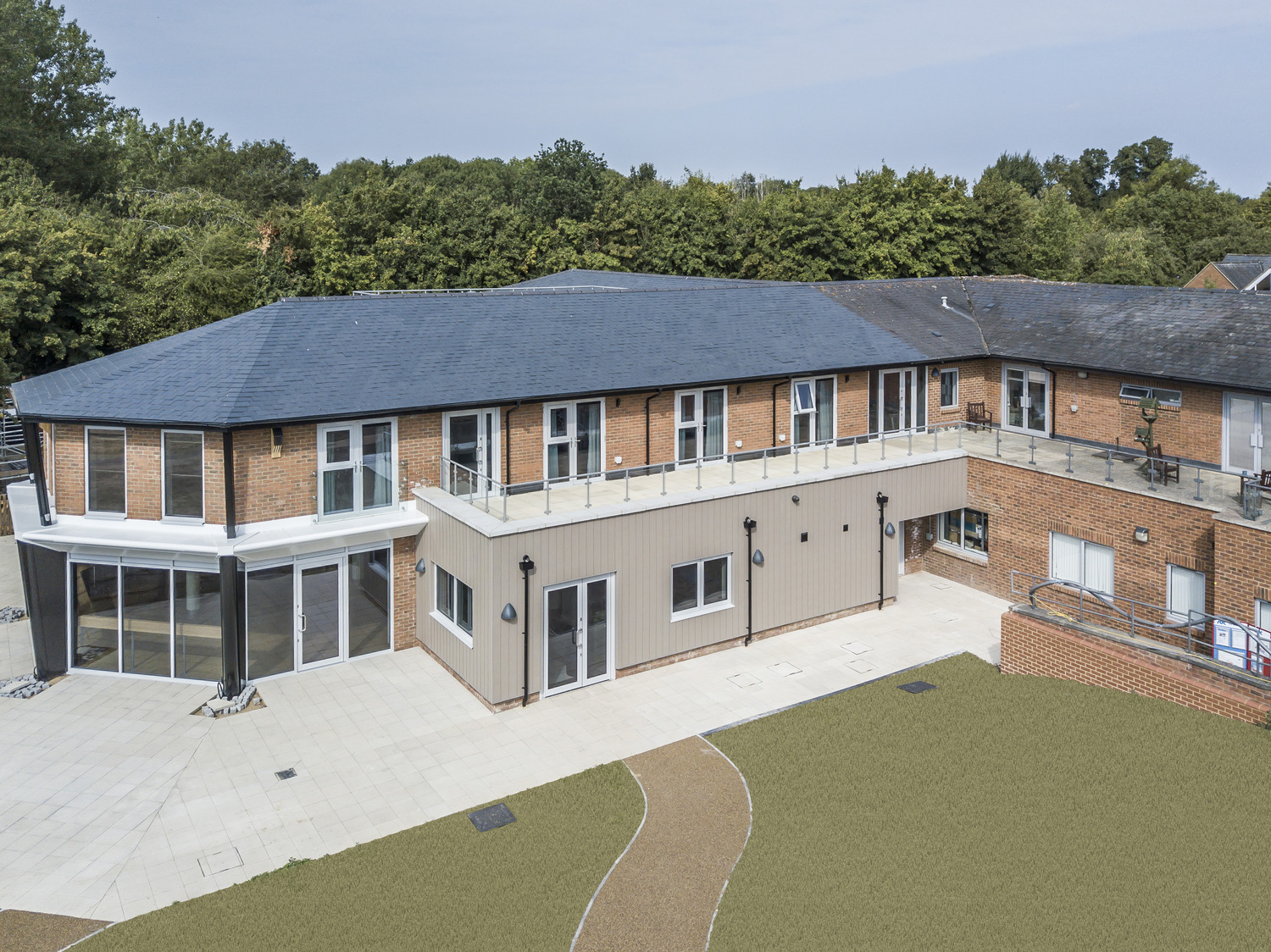 The phase 2 works comprised demolishing the existing well-being centre and constructing a new two-story steel-framed extension to the South of the site, along with a minor extension to the West.