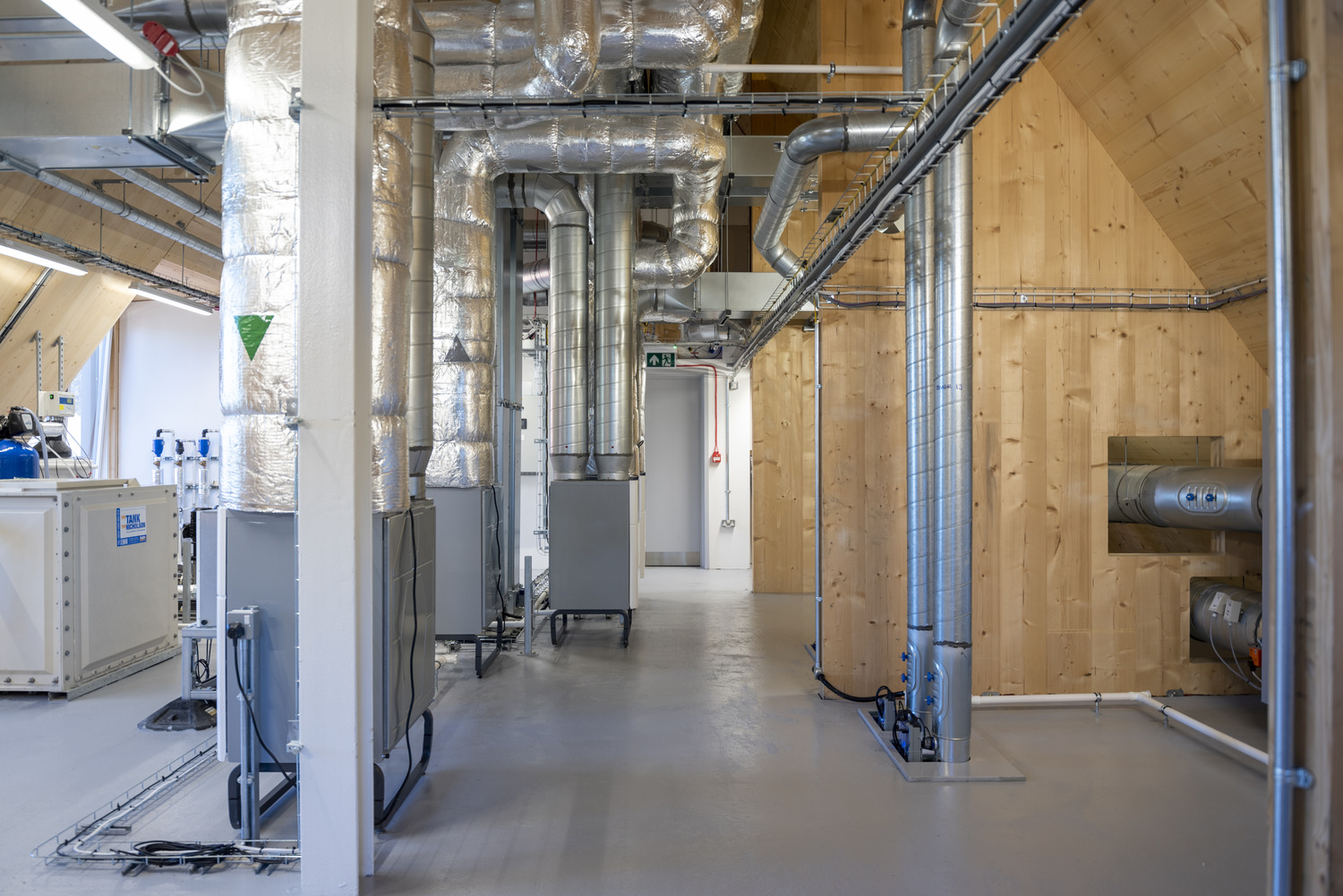 The building itself utilises a Cross Laminated Timber (CLT) frame with low embodied carbon cement replacements in the concrete elements.