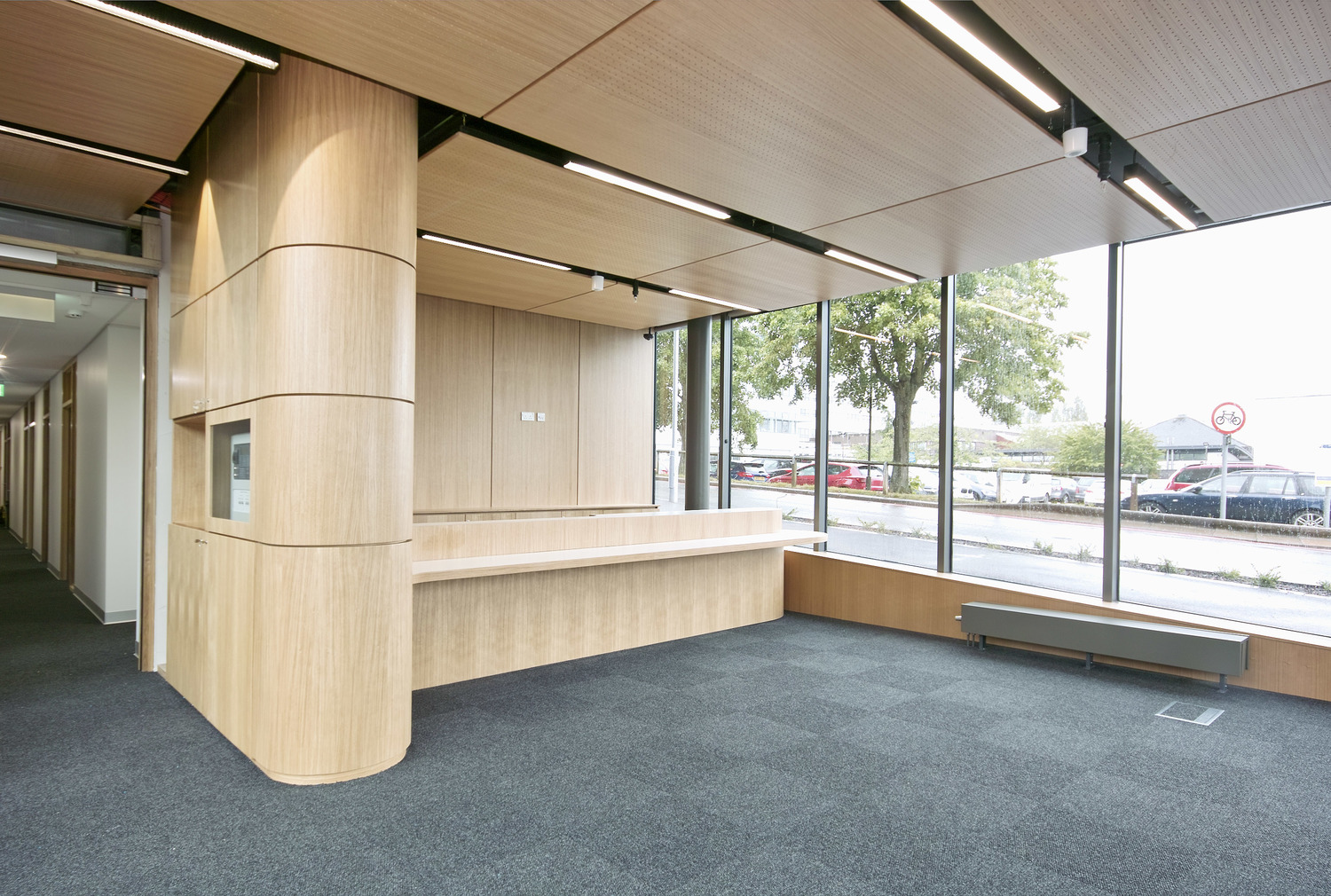 An innovative solution for natural ventilation with acoustic buffering is incorporated within the reveals of the facade, ensuring the building is full of fresh air and controlled natural light, reinforcing the University’s commitment to sustainability, health, and well-being. The landscaping strategy provides colourful and fragrant planting towards the north and northeast boundary, which also incorporates seating for staff and visitors to enjoy.