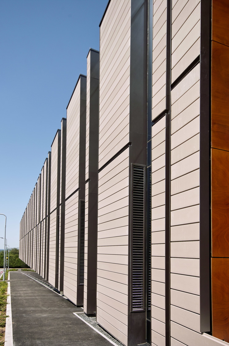 The facade is arranged in various combinations to create a unique architectural pattern broken up by full height slot window apertures that are arranged to introduce daylight into the building and express the internal building layout and variety of spaces.