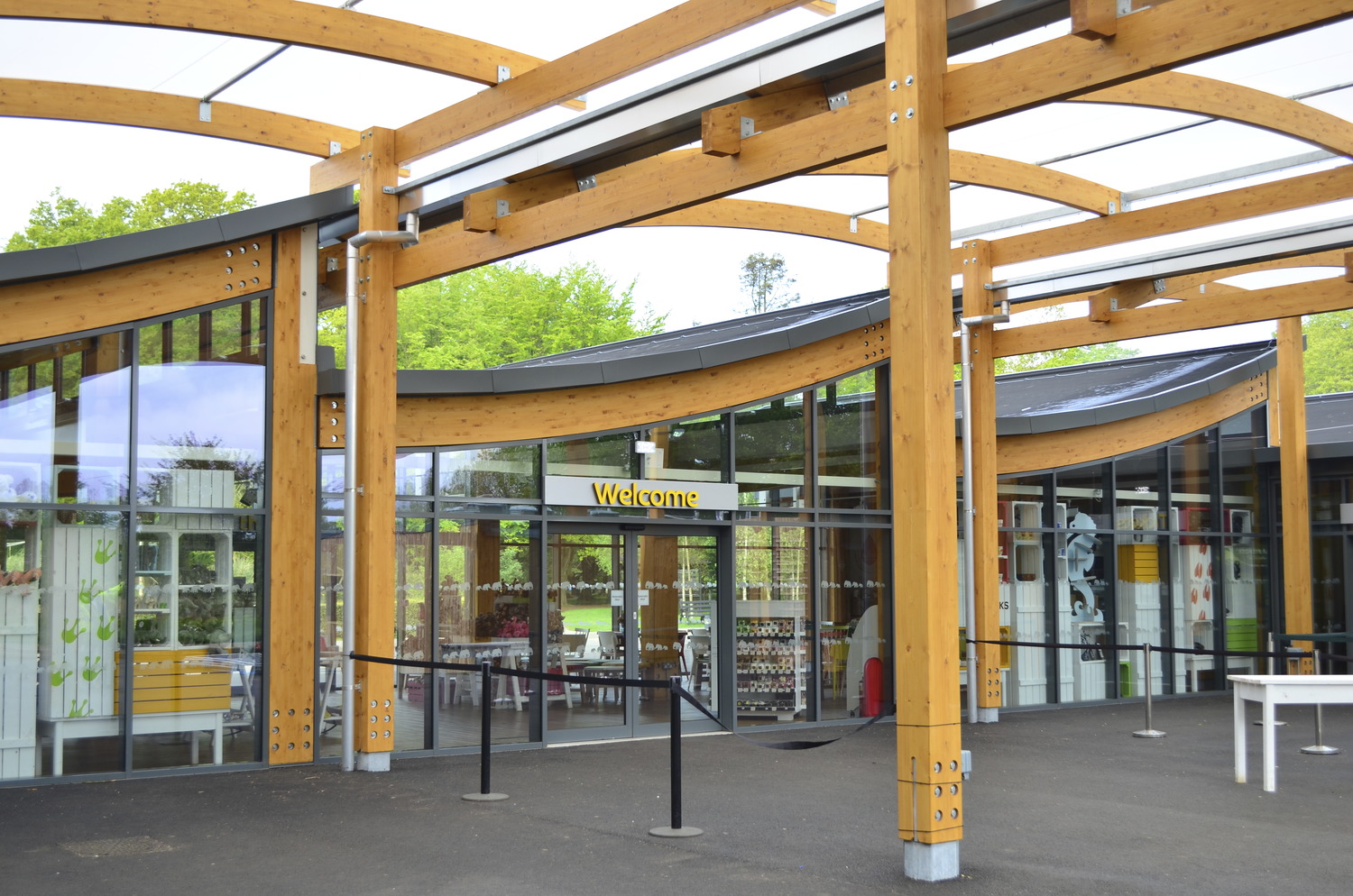 The timber span canopy with fully glazed façade maximises natural daylight and provides panoramic views of the zoo. In addition, the centre includes pop-up retail units and seating areas.